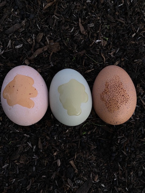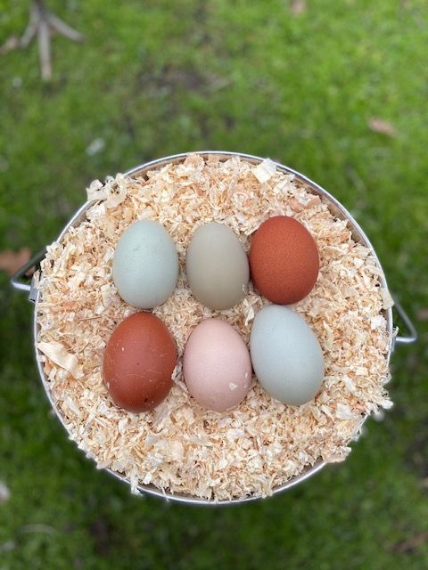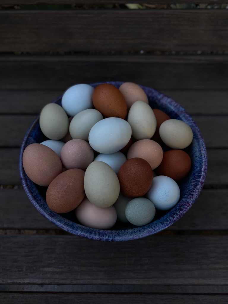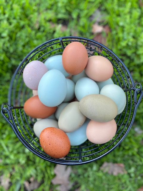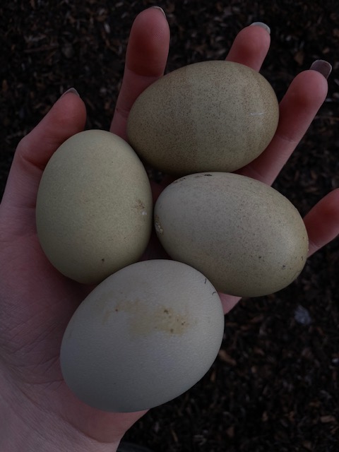 Above is a slideshow showing off some of our best egg photos! If you are local to Northern California, we sell hatching eggs for you to pick up and hatch your own chicks that will give you a colorful egg basket like ours! Some of the pictured eggs are from chickens hatched from our own eggs!