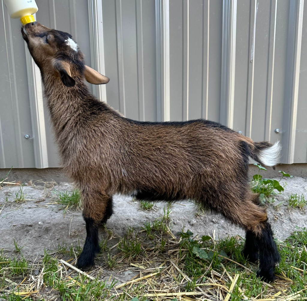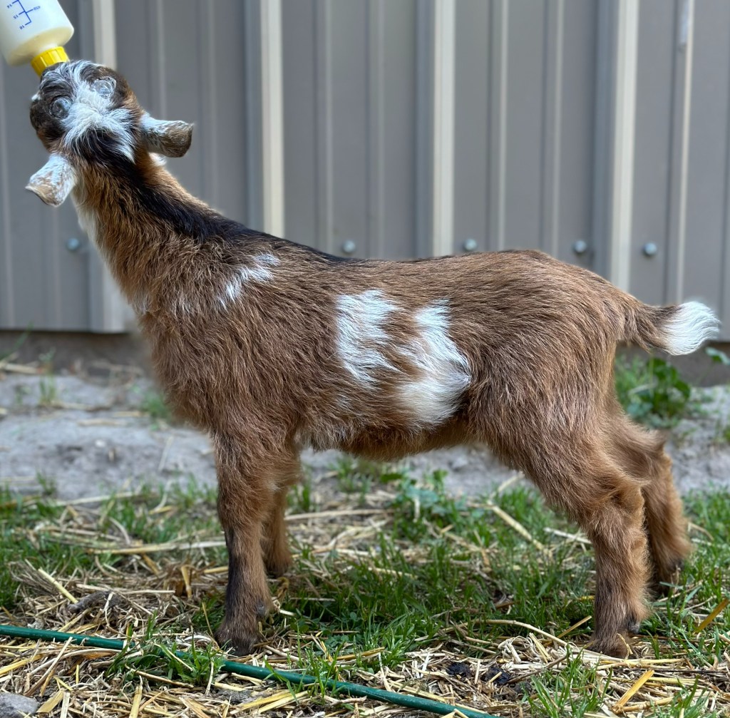 I am incredibly excited to welcome this new doeling into the herd! May has an amazing pedigree with lots of production behind her and I cannot wait to see how she matures! She has been commended for her dairy strength and correct feet.